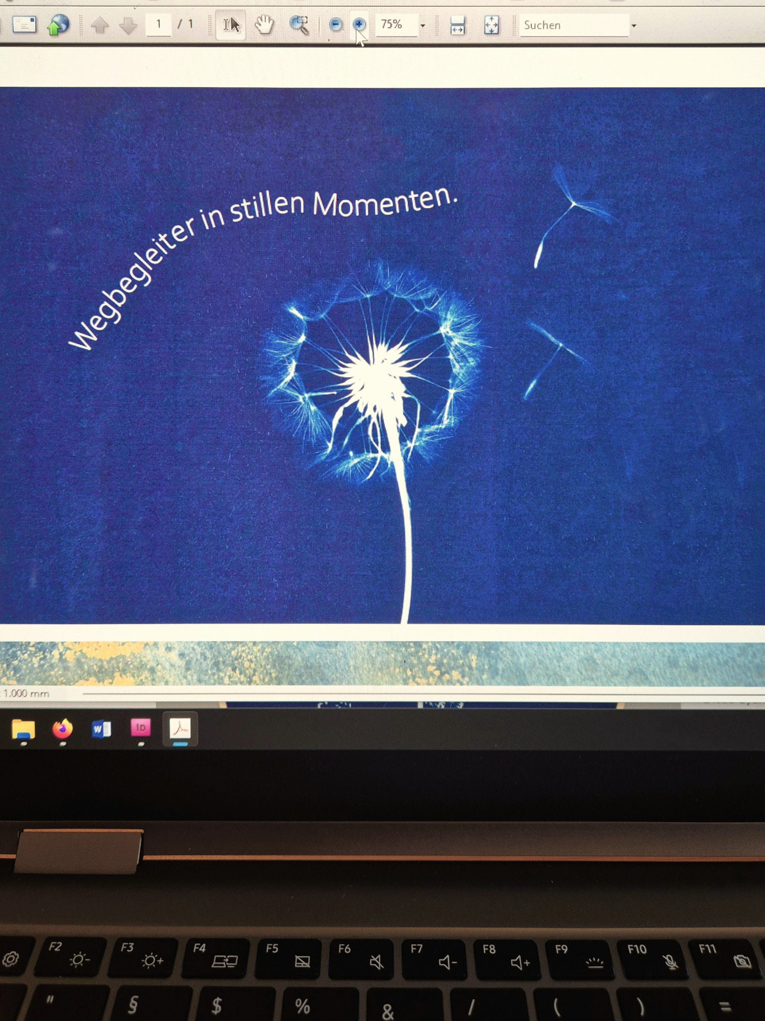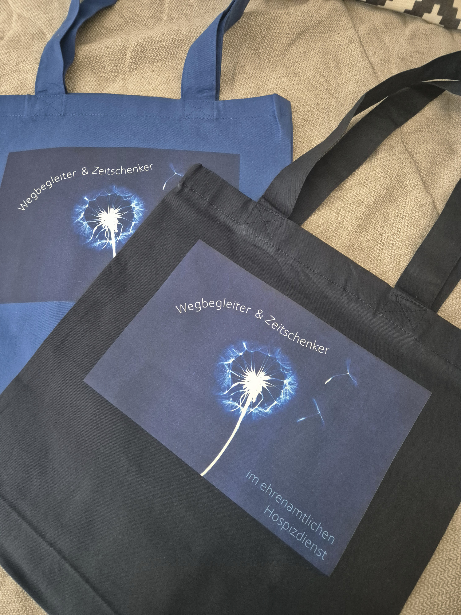 Zum Weihnachtsfest erhalten die ehrenamtlichen Mitarbeiterinnen des ambulanten Hospizdienstes Weimar und Erfurt ein besonderes Dankeschön: individuell gestaltete Baumwolltaschen mit einem filigranen Blaudruck. Die hochwertigen Stoffbeutel sind nach persönlicher Absprache mit einer Cyanotypie im Transferdruck versehen. Das Motiv "Haferwurzel" wurden nach eigenen Wünschen ausgewählt und steht für die Vergänglichkeit des Lebens, wobei die tiefblaue Bildtechnik die Begleitung in stillen Momenten symbolisiert. Die Tasche drückt die Anerkennung für das Engagement und die Menschlichkeit der Ehrenamtlichen aus.